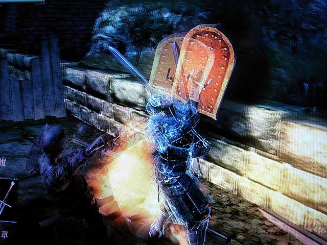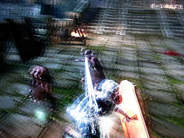 いきなり背中を切られる。不意打ちとか、卑怯者!!俺もやりたい!!前面から応戦です。防御してから隙を見てたたき切る!みたいなことを考えていましたが、スタミナ切れで死に掛ける。