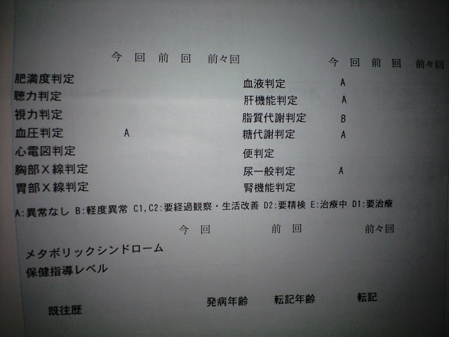 「脂質代謝判定」だけB。くっそ、なんかくやしい。綜合判定はというと、こんな感じです。