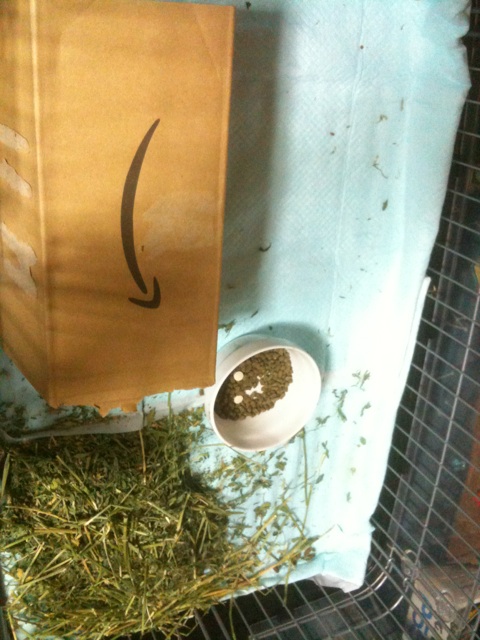 手が滑ってアルファルファが大量にありますが、それはおいといて、ついに手からペレットを食べるようになりました。また、掃除は上から、えさは入り口を開けて、といったことを続けていたら扉を開けるとこっちを見たりします。しかしまだぷいぷい鳴かないので、まだまだ完全に慣れているわけではない様子です。「えさをくれ」と鳴いてくれるのが理想なんですけどね。