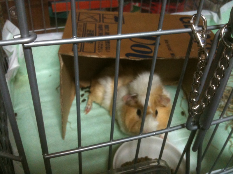 モルモット生活も3週間を突破しまして、モルモットと私との間にある程度の信頼感が生まれつつあります。少し前に部屋を変えまして、いつまでも小さい衣装ケースじゃ狭かろうということでちゃんとした小屋を購入しました。新しい部屋を紹介する前にとりあえず現在のモルモットをご紹介します。