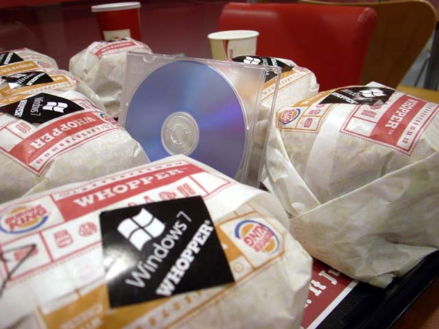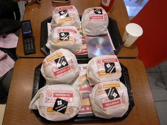 バーガーキングは肉が7枚挟まれたハンバーガー「Windows7 ワッパー」を販売しました。