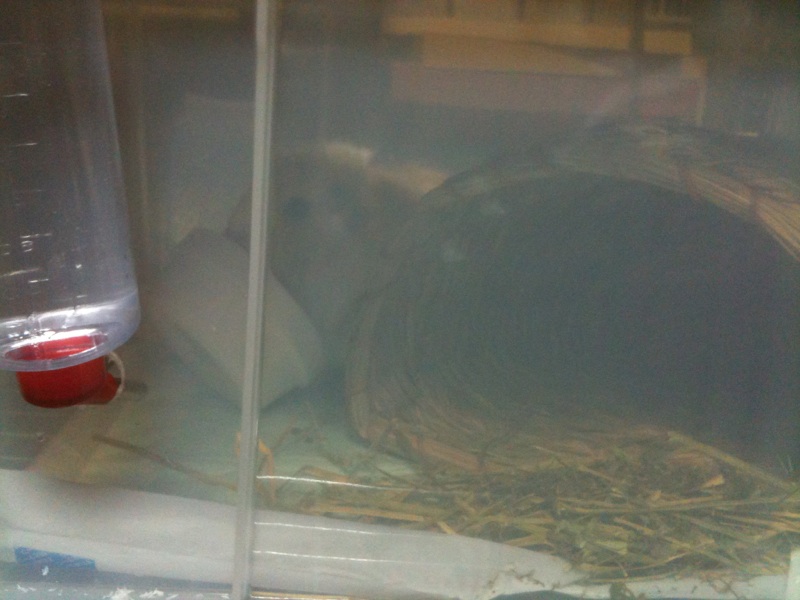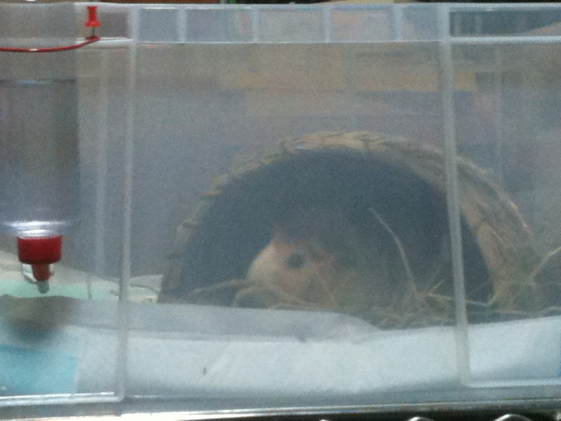 段ボールに手をかけた瞬間一目散である。しょんぼり。しかしこの後そっとしておくとすぐに外に出てもしゃもしゃやりはじめた。恐らく僕の手が大層怖いのだろう。怖くなくなるまで気長にお世話をしようじゃないか。しかし、日に日に小屋から出る時間が長くなっている。慣れてきているのだろう。1ヶ月もすれば手にも慣れてくれるだろうか。