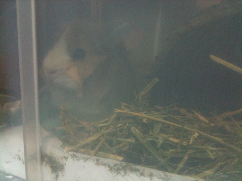 噂のモルモット。びびっているので奥に隠れている。見てのとおり美人さんであるので、値段が980円とは驚きである。値段の理由をペットショップの店員さんに聞いてみると、「この子は廃業したブリーダーから受け取ったモルモットで、その廃業ブリーダーの環境が粗悪なものであったから早く幸せになってほしいとの願いで安くしている」とのこと。いいお店である。数時間は上記のような状態で一切動かなかったが、時間がたつと小屋から抜け出してペレットを食べ始めた。大変かわいい。