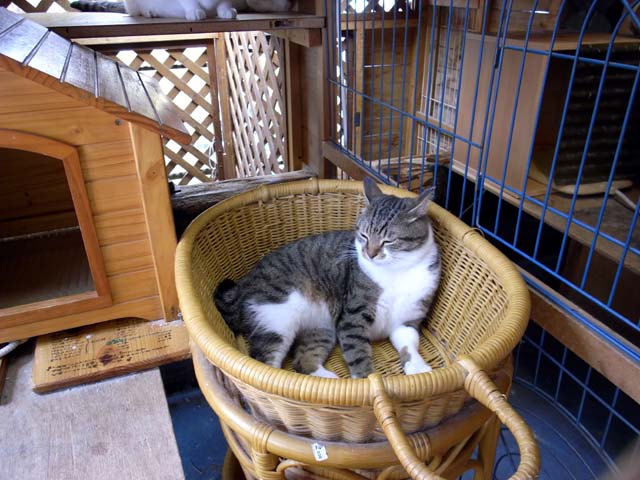 入り口の左側には小さい子やがあって、そこにはネコさんが4匹いました。