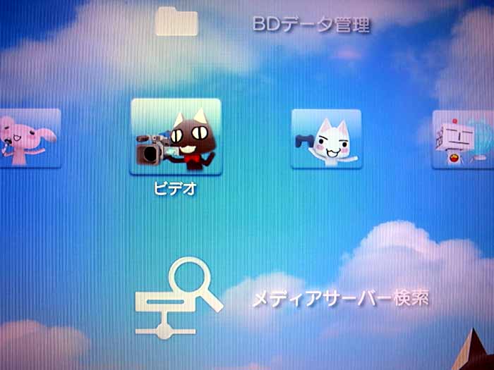 ネットワーク上にあるメディアサーバを見つけてくれます。ネットワーク上というのは単純に同じルータにつながっているパソコンです。これで音楽やら映像やら画像やらが閲覧できます。PS3の画質ブースト機能も適用されているので高画質で画像や映像を見ることができます。すばらしい。