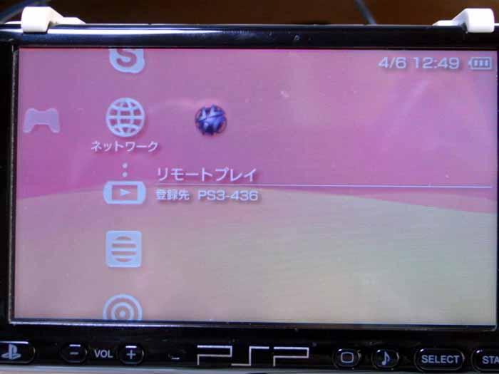 PSPのリモートプレイを起動します。なお、このリモートプレイというのは部屋の中ではなく、無線LANがある環境であれば可能です。PS3の設定さえしていれば、PS3の電源が切れていたとしても勝手に電源をつけられます。もちろん消すこともできます。