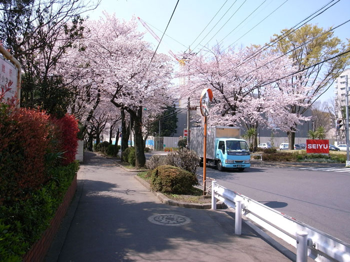 自宅近くの通り道。桜がとても綺麗です。
