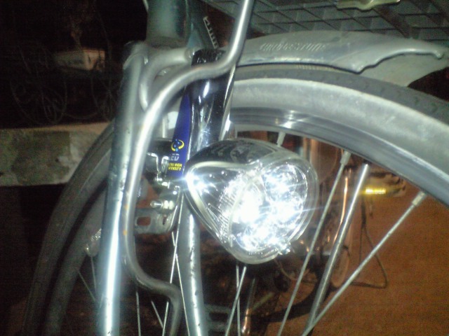 いや、ダイナモって漕いだ瞬間だけ明るくなってすぐに暗くなるじゃないですか、まるで蛍のようだ、といつも思っていたわけですよ、気持ち悪いですね。でもこのLEDは漕いでいる間一定時間すさまじい光を前に照らすんですよ、ほんとにびっくりです。時代はすすむね!いいね!